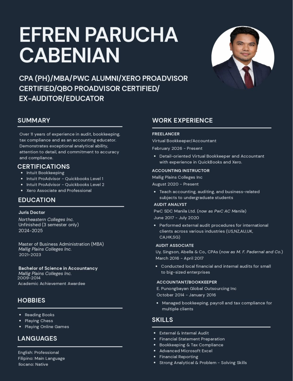 Besides his professional commitments, he imparts his extensive knowledge as an online educator and a motivational coach in business and finance. He is a founding member of PICPA - Northern Emirates. He is renowned for his detail-oriented approach and commitment to excellence in the field of accounting.
