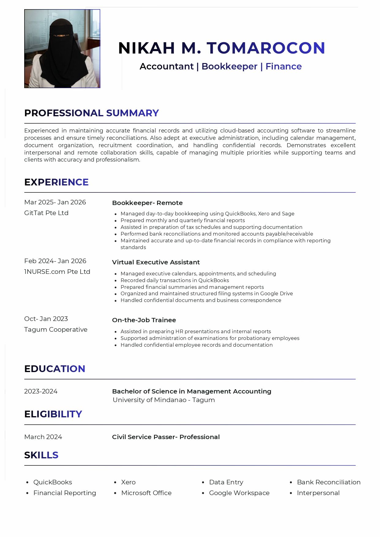 - Nikah M. Tomarocon Accountant/Bookkeeper